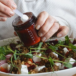 FODZYME®is a tasteless enzyme powder designed to break down FODMAPs (fructan, GOS, and lactose) in food to make meals more digestible. It's formulated specifically for people with FODMAP sensitivities.
